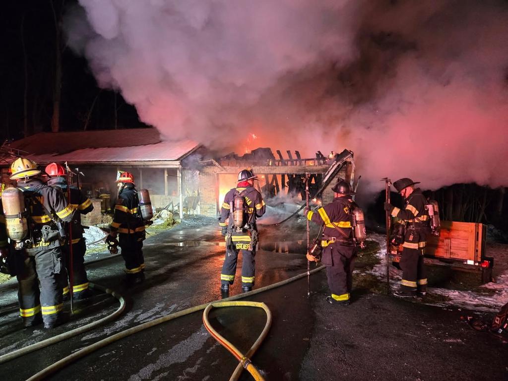 Firefighters operated for approximately two hours under very cold conditions, working to control and extinguish the fire. Two individuals were evaluated and transported to a local hospital, where they are reported to be recovering.